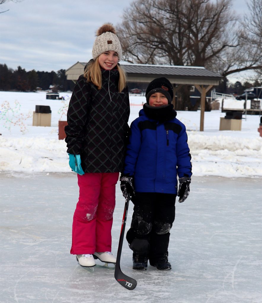 Sydney and her brother Sawyer enjoy skating on the ice at Torpy Park, Minocqua. Kim Johnson photo Share!