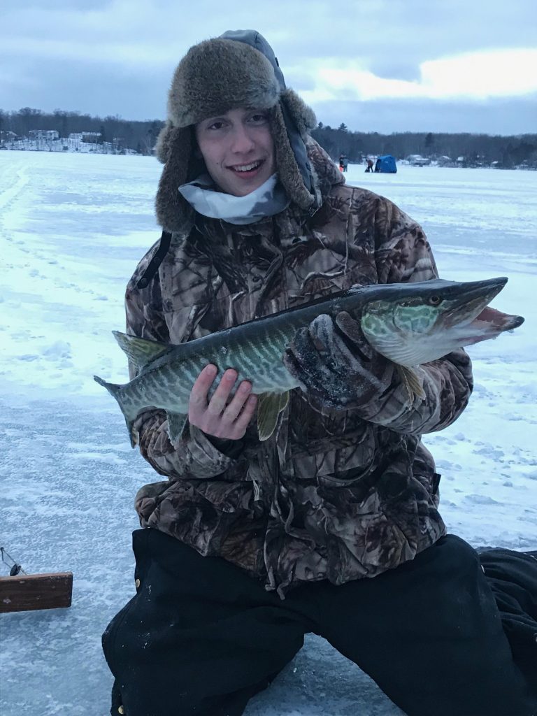 Mason shows off a nice tiger musky caught in the Lakeland area. Submitted photo
