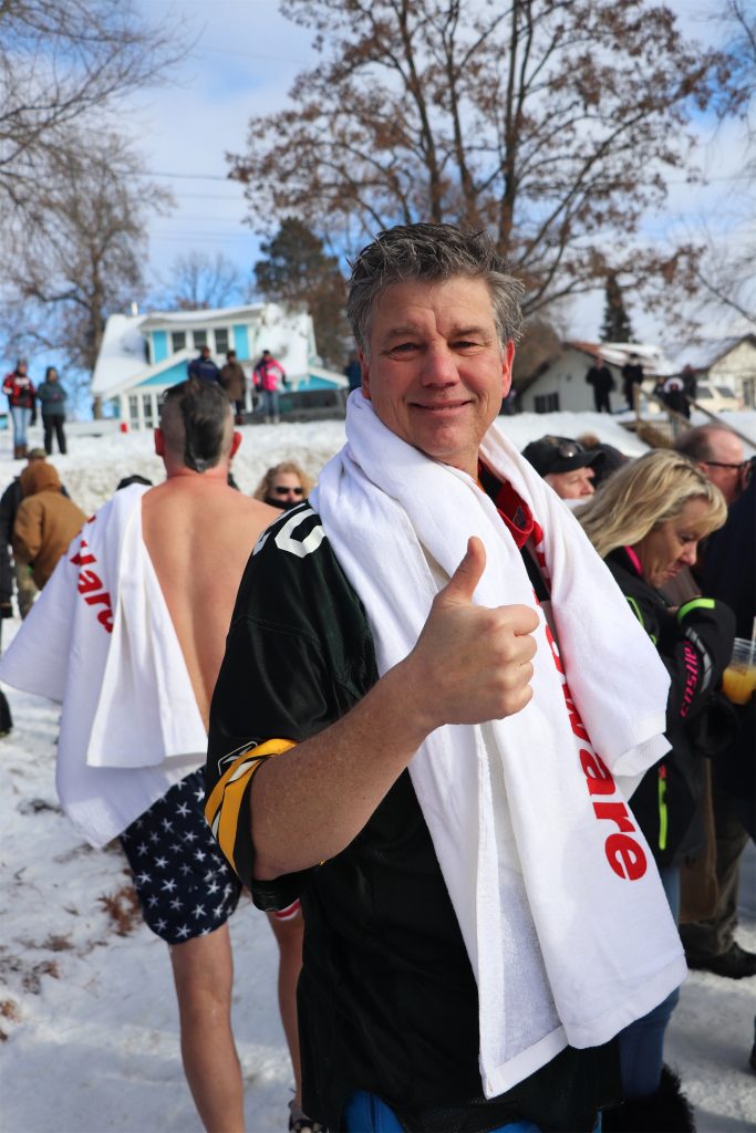 Eric gives a thumbs up after his jump into Lake Minocqua. Kim Johnson photo